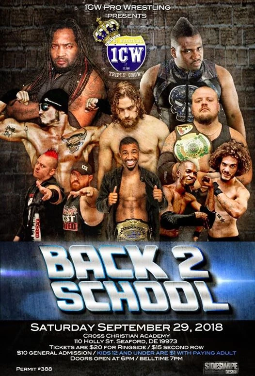 1CW Back 2 School was a wrestling event held by First State Championship Wrestling. It took place on September 29, 2018 at the Cross Christian Academy in Seaford, Delaware.