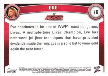 The 2011 WWE (Topps) Eve (No.76) is one of the cards in the 2011 WWE (Topps) trading card series.