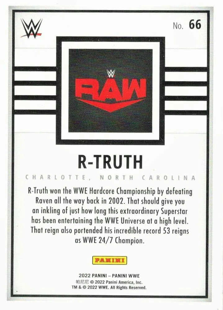 The 2022 WWE (Panini) R-Truth (No.66) is one of the cards in the 2022 WWE (Panini) trading card series.