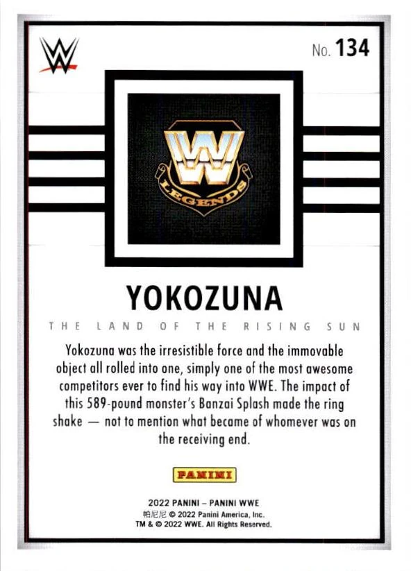 The 2022 WWE (Panini) Yokozuna (No.134) is one of the cards in the 2022 WWE (Panini) trading card series.