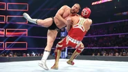 Gulak wasted no time trying to ruin Gran Metalik's debut by executing a dropkick as soon as the opening bell sounded. The attack left the lucha libre daredevil reeling and it took some time for him to regain his composure. Although Gran Metalik showed off an incredible display of offensive agility, Gulak relied on his brutal striking ability to keep the high-flyer grounded.