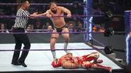 Displaying the resilience that saw him conquer the Cruiserweight Classic, The Duke of Dab battled back and zeroed in on Neville's arm. Perkins nearly claimed victory with a cross armbreaker, but The King of the Cruiserweights incredibly countered with a deadlift powerbomb.