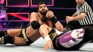With plenty of gas left in the tank, Ali took advantage of the contest, taking the fight directly to Gallagher. With momentum in his favor, Ali attempted his inverted 450 Splash but the British Superstar rolled away allowing Perkins to apply a cross armbreaker to eliminate Ali.