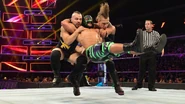 After Itami saved the match, all four Superstars were slow to recover and engaged in a sequence of blow after blow that again left them all down and out on the mat. The first to recover, Ali attempted to take out TJP, but the two countered each other until crashing into one another and were again left reeling.