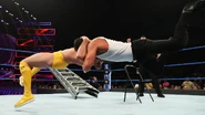 Lorcan attempted to powerbomb his opponent into the steel chairs, but he was instead tossed into them himself. Looking to put Lorcan away from good, Daivari set up the ladder, ascended to the top and executed a Persian Splash, only to have his opponent barely kick out at two.