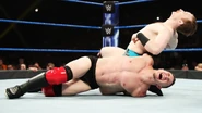 In addition to using his technical expertise, Gallagher attacked with precision to keep his opponent at bay. Showing off his unorthodox style, Gallagher tied Justin up in the ropes before executing a running dropkick.