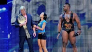 After successfully cashing in his Money in the Bank contract, Dolph Ziggler returned to SmackDown as the new World Heavyweight Champion — proclaiming that "the future is now," with AJ Lee and Big E Langston at his side.