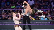 Well, that, and the match got personal in a hurry — after Gentleman Jack mocked TJP with a dab, The Fil-Am Flash threw William the Third onto the arena floor. After Jack gained momentum by retrieving William and using the umbrella for an assisted top-rope senton, TJP, threw Gallagher into Aries, causing A-Double to nearly rush the ring until Neville knocked him off the apron. While the ref was preoccupied, Perkins kicked the middle rope into Gallagher's eyes and finished him off with a Detonation Kick before making himself scarce, with Neville standing firm as a human shield between him and Aries. Curiouser and curiouser.