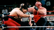 The April 8, 1996 Edition of RAW is a Professional wrestling television show of the WWF's RAW brand, took place on April 1, 1996 in San Bernardino, California at the Orange Pavilion. This was the first episode to begin at 8:57pm, to counter WCW Monday Nitro which had been airing 3 minutes before Raw and was winning over viewers by doing so.