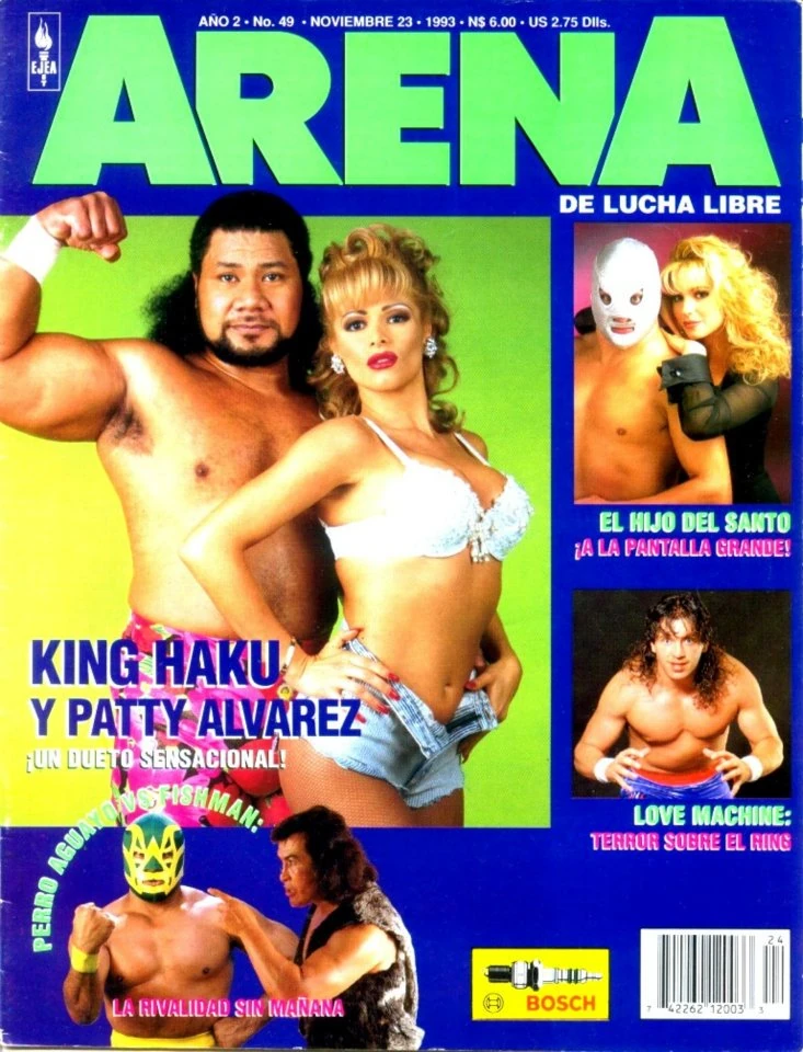 The cover features King Haku, Patty Alvarez, El Hijo Del Santo, Love Machine, Perro Aguayo, Jr., and Fishman.
