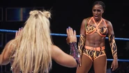 With all four Superstars competing at a break-neck pace, Carmella got too overzealous and tagged herself in to the match, much to her partner's chagrin. The Princess of Staten Island would regret her bold move when Naomi reversed the Code of Silence into a submission hold of her own, forcing Carmella to tap and claiming the victory for her squad.