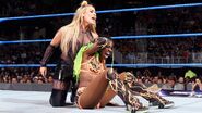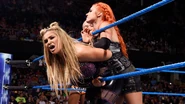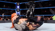 In this first-ever tag team match, SmackDown Women's Champion Naomi paired up with Becky Lynch to take on the woman who will challenge Naomi for the title at SummerSlam, Natalya, and Ms. Money in the Bank, Carmella.