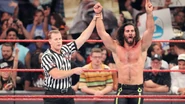 He owes Chris Jericho a big hug for lending a hand, though. The Man That Gravity Forgot was running roughshod over KO in the early openings until “Jeri” came to “KO’s” aid, allowing Owens to land a barbaric clothesline on his foe. Jericho interfered again when Neville set up for the Red Arrow, and this time it helped Owens secure the win, as he tripped his opponent up on the turnbuckle and quickly administered a spinning torture rack neckbreaker to earn the win.