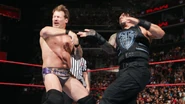 With Jericho in the driver’s seat, Reigns had to work twice as hard to dig himself out of the proverbial hole. He encountered another obstacle when Kevin Owens came to Jericho’s aid and started throwing superkicks in Reigns’ direction. Unfortunately, miscommunication and a late rally from Reigns earned Owens a Superman Punch, at which point Jericho got it — or in this case, a Spear.