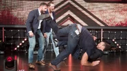Drew McIntyre then came to the stage and pointed in Strong's direction, seemingly indicating that he considers Strong worthy of a title opportunity after his hard-fought win. Suddenly, McIntyre was jumped from behind by the hell-raising triumvirate of Adam Cole, Kyle O’Reilly & Bobby Fish. Cole DDT’ed the NXT Champion onto the ramp, and the trio batted away security guards before exiting through the crowd. All three brashly declared that NXT now belongs to them as they walked out of the building, leaving NXT General Manager William Regal to fume over their actions.
