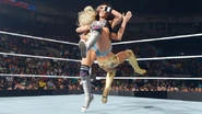 Divas Champion AJ Lee appeared to exacerbate her whiplash injury at the start of her bout against Summer Rae. But utilizing her Black Widow submission hold, the resilient champion forced Summer Rae to tap out. After the bout, AJ declared she will ruin Paige's fairy tale at SummerSlam, but Paige emerged and promised to take back "her" title at the big summer pay-per-view.