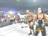 - WCW World Champion Hulk Hogan, Bill Goldberg, & Sting defeated Kevin Nash, Sid Vicious, & WCW TV Champion Rick Steiner at 8:08 when referee Scott Dickenson ran out, took over officiating duties after the initial referee was knocked out, and stopped the match as Sting had Nash in the Scorpion Deathlock, moments after Hogan hit Sid and Nash with a steel chair.