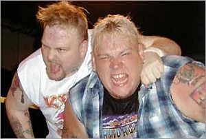 Since the brothers both blamed each other for the loss, they began a feud against one another after teaming together for two years. The first match between the two “brothers” was at “Double Tables” on February 4, 1995 which Ian won. They next clashed in a “Hair vs Hair” match on the April 8 show Three Way Dance. After being shaved bald Ian came looking for revenge at Hostile City Showdown only a week later, this time in a “Barbedwire Baseball Bat” match, but once again Axl beat his “brother”. Their final match took place at Hardcore Heaven in a Taipei Death match.
