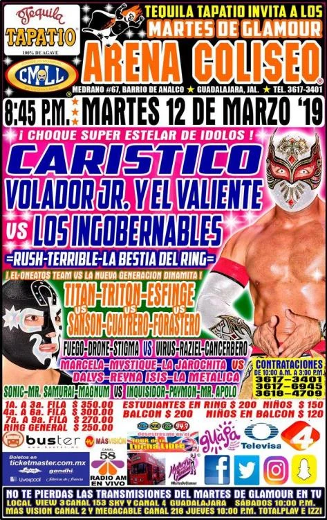 The March 12, 2019 Edition of CMLL Guadalajara Martes took place in Guadalajara, Jalisco on March 12, 2019.