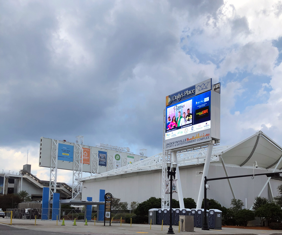 Daily's Place is an amphitheater in Downtown Jacksonville, Florida. The venue is connected to the south end of TIAA Bank Field and shares space with a "flex field" indoor practice facility for the Jacksonville Jaguars. It opened in May 2017 and seats 5,500 spectators. Naming rights were secured by Daily's, a local convenience store chain.