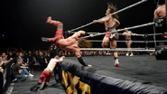 The match quickly broke down into complete anarchy, with all eight men standing off in the center of the ring. The official briefly got the bout back under control, but there was no stopping the teams from brawling. Amid the chaos, a fired-up Jordan took on Blake, Murphy and The Vaudevillains himself. The Hype Bros neutralized The Vaudevillains, with Mojo Rawley tossing Zack Ryder onto them at ringside. Jordan followed up by hurling Murphy out of the ring with a belly-to-belly suplex, leaving him alone with Blake in the ring. He and Gable connected with Grand Amplitude on Blake to pick up their biggest win to date.
