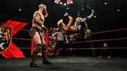 Joe Coffey and Alexander traded their best in an all-out war between members of Gallus and Imperium with the rest of both factions banned from ringside. The Iron King made his strategy clear early on, raining down on Wolfe with thunderous lefts and rights until Wolfe took control with a cheap attac as the referee tried to separate them in the corner.