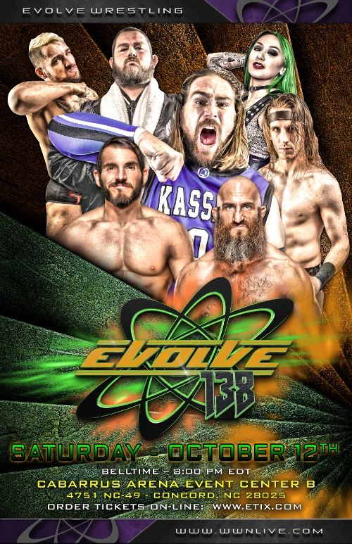 EVOLVE 138 was an event produced by Evolve. It took place on October 12, 2019 at the Cabarrus Arena Event Center B in Concord, North Carolina. It was broadcast on WWNLive.com.