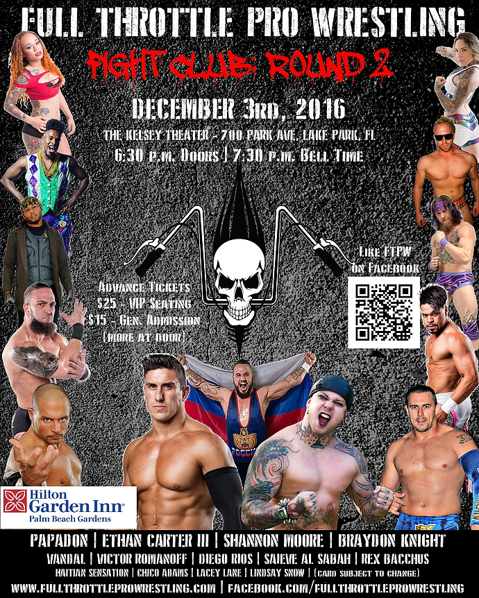FTPW Fight Club: Round 2 was a professional wrestling event produced by Full Throttle Pro Wrestling, that took place on December 3, 2016 at the Kelsey Theater in Lake Park, Florida.