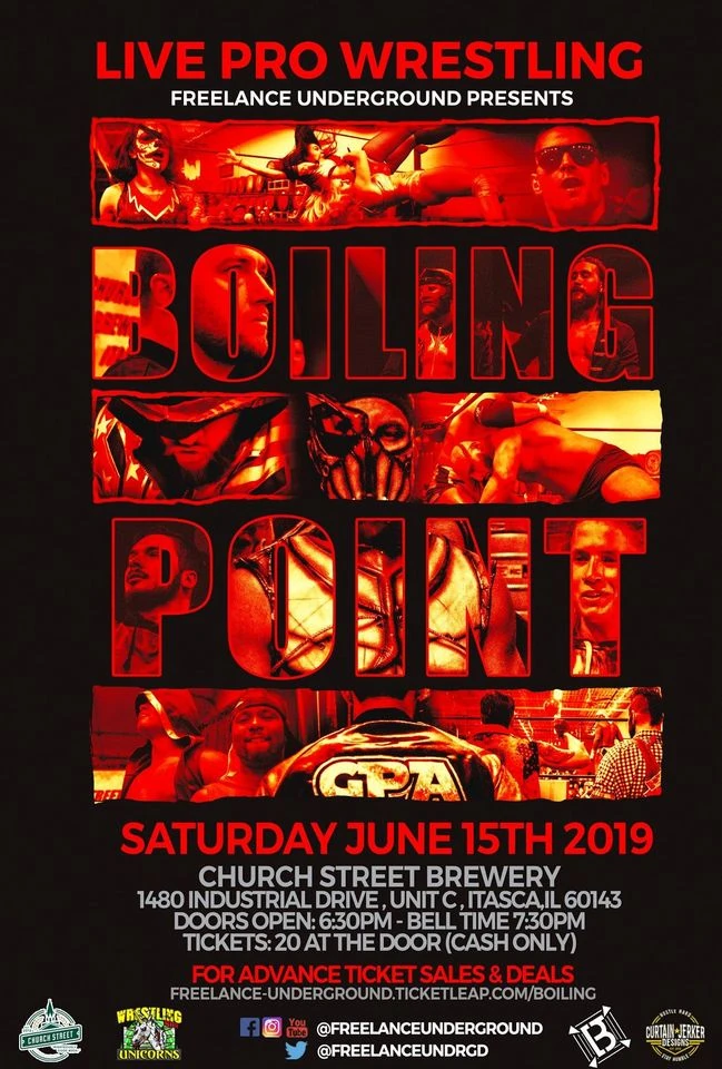 FU Boiling Point was a professional wrestling event produced by Freelance Underground (FU) promotion, which took place on June 15, 2019 at the Church Street Brewing Company in Itasca, Illinois.