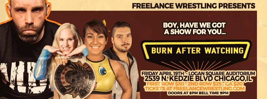 FW Burn After Watching was an event produced by Freelance Wrestling. The event took place on April 19, 2019 at the Logan Square Auditorium in Chicago, Illinois.
