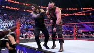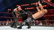Roman Reigns is on the road to Fastlane, but what's really grinding his gears is the propensity of his opponent, Braun Strowman, to ruin his night at every turn. But while Raw Commissioner Stephanie McMahon wasn't about to let Reigns interfere with Strowman's match later on in the evening — she tossed out a thinly veiled threat of booting him from WrestleMania — she was more than happy to feed Reigns into a 2-on-1 disadvantage against Luke Gallows & Karl Anderson in a Handicap Match when the tag champs ostensibly arrived to defend her from Reigns' disrespect.