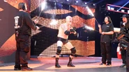 Jericho launched, as a result, into a heartfelt thank-you speech to Owens for making his year that much better, and promised he would help Owens defeated Goldberg at Fastlane as his best friend and brother. Owens, seemingly humbled, presented Jericho with a brand-new List — The List of KO, with Jericho's name as the only one on it. And you know what happens when someone makes The List: Owens destroyed his best friend with savage abandon, administering a pair of apron powerbombs before slamming Jericho face-first into the LED screen that had been set up in the ring.