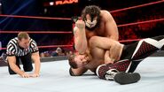 Sami Zayn has a propensity for stepping to Superstars who are bigger and stronger than he is, but it looks like Samoa Joe has saved him the trouble this time around. The Samoan Submission Machine, who had talked some trash about Zayn earlier in the evening during an interview with Michael Cole, certainly picked his moment to strike wisely. He waited until after Zayn had gone the distance against Rusev and surprised The Super Athlete with a Helluva Kick out of nowhere at the end of a hellacious match. When The Underdog from the Underground was giving his post-match interview atop the ramp, Joe struck, peppering Zayn with punches before slamming him into the TitanTron and putting him to sleep with the Coquina Clutch.