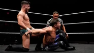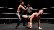 Smelling blood in the water, The Irish Ace looked to stomp his opponent's injured appendage into the unforgiving steel, but Travis Banks emerged to make sure Dar didn't suffer the same fate that he had.
