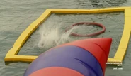 The second season begins with 14 contestants competing in their first challenge, which requires them to be launched into the air and land in the center of a cornhole board.