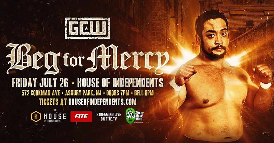 GCW Beg For Mercy took place on July 26, 2019 at the House Of Independents in Asbury Park, New Jersey. It was broadcast on FITE TV.