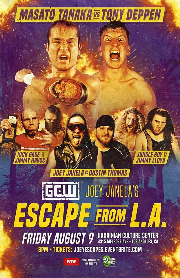 GCW Joey Janela's Escape From L.A. took place on August 9, 2019 at the Ukrainian Culture Center in Los Angeles, California. It was broadcast on FITE TV.