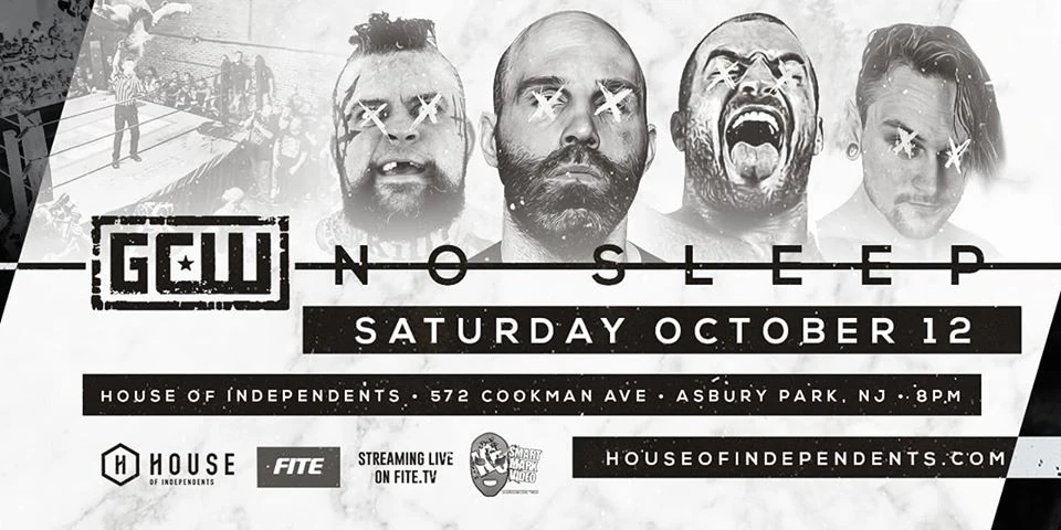 GCW No Sleep took place on October 12, 2019 at the House Of Independents in Asbury Park, New Jersey. It was broadcast on FITE TV.