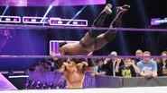 With The Scottish Supernova dispatched, Swann dared his No. 1 contender, Neville, to come to the ring and throw down. Neville appeared, but stopped just short of the ropes and was ready to make his exit ... until Swann lawn-darted him with a suicide dive, sending the self-proclaimed “King of the Cruiserweights” back to his lair with minimal momentum on his side heading into Sunday's title match.