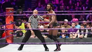 Noam Dar finally has Alicia Fooooooooox on his arm, but unfortunately, The Scottish Supernova also had Rich Swann's foot in his face by the end of the night. The Cruiserweight affectionately known as “Mr. Steal Your Girl” certainly used Miss Fox to his advantage in his bout against the WWE Cruiserweight Champion, even employing Alicia as a human shield at one point. But Dar — yep — couldn't handle this, and Swann uncorked a spin kick to the mush that put Dar down for three.