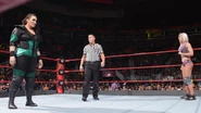 Well hello there, Mustafa Ali. This Cruiserweight has been lighting up 205 Live for some weeks now, and he's officially made his Raw debut as the key member of a three-man squad that also included TJ Perkins and “Gentleman” Jack Gallagher. Everyone in Ali's team certainly did their part, but thanks to a late-breaking scrap where Perkins took out Tony Nese and Gallagher headbutted Ariya Daivari into next Tuesday, Ali provided the finishing touch on a prone Drew Gulak with his signature Inverted 450 Splash.