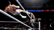 After catching the rapping Superstar in a precarious position on the ropes, Del Rio viciously caved in R-Truth's chest with a brutal double stomp to claim the victory.