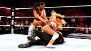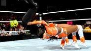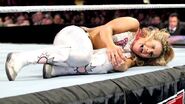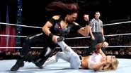 Despite Tamina trying to muscle her way into control, Natalya stunned her with a discus clothesline. However, Tamina's power was too much for Natalya to handle. The bodyguard of the Divas Champion stomped Natalya into the canvas and targeted her opponent's knee.