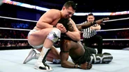 Jinder Mahal was next in the bout for the faux rockers, briefly trapping Jimmy in the corner, but Uso muscled his way out and brought Langston into the fray. Langston hurled Mahal around with ease before knocking the wind out of him with a big shoulder block.