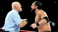 With Sgt. Slaughter selected as the guest referee by a WWE App vote, Sandow was in a foul mood from the start and it didn't improve when Khali rained a series of chops on his head and chest. Sandow briefly gained the upper hand until another big chop from Khali – accompanied once again by Ranjin Singh – laid him low for a three-count ... despite the fact that Sandow's foot was on the ropes. The Enlightened One was appropriately livid that Slaughter didn't see him break the pinfall, though putting hands on the Hall of Famer earned him an agonizing Cobra clutch. Moments later, Slaughter danced in celebration.