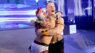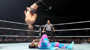 The championship contest ended in controversy after the Lass Kicker appeared to have a career-changing victory within her grasp when the titleholder tapped out to her Dis-arm-her submission. Unfortunately for the challenger, Flair pulled his daughter's foot to the bottom rope just in time, causing an irate Lynch to turn her attention toward the two-time WWE Hall of Famer. The self-proclaimed “genetically superior Diva” took advantage of the distraction to roll up her former Team PCB partner — also blatantly utilizing the ropes as leverage — and pick up the victory.