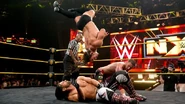 The match devolved into an aerial war, with all four men laid out on the ramp after an unbelievable dive from Zayn. Kidd soon crawled back into the ring, holding his knee as if it were injured. Natalya rushed to his side on the ring apron as the referee held Zayn back. Kidd suddenly jumped to his feet and tried to attack Zayn, but the French-Canadian answered with a big right hand that sent Kidd crashing into his wife, knocking her from the ring apron. Both Zayn and Kidd showed concern for Natalya, but when Zayn made a move to leave the ring, Kidd scrambled behind him and rolled him up to get the win! Nearly everyone in the NXT Arena was stunned at Kidd's actions, except for the Hart Dungeon graduate, who celebrated the huge win oblivious to his wife's anger.