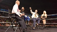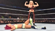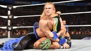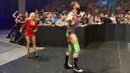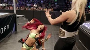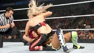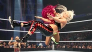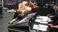 In the subsequent contest on SmackDown, Banks withstood Brooke's powerful offense in order to make her opponent tap-out to The Bank Statement, taking out Charlotte in the process. Yet, before The Boss could celebrate, Charlotte viciously attacked her and booted her in the face before hurling her over the SmackDown announcer's table.