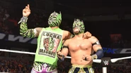 - Kalisto (w/ Sin Cara) defeated Tyler Breeze (w/ Fandango) (3:08)