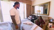 Jimmy Uso arranges a small staycation for himself and Naomi at a resort this week, complete with a nice room and massages for each of them. Problem is, Naomi is having stomach issues and just wants to sleep it off, and she doesn't want to tell her husband because she thinks he'll make fun of her. She tries to tough it out through the various activities, but Jimmy knows something's up and ends up bummed his wife can't enjoy herself. So, she makes it up to him with a silly idea when they return home: dressing up in cheerleader and football player outfits as a throwback to their respective high school days.